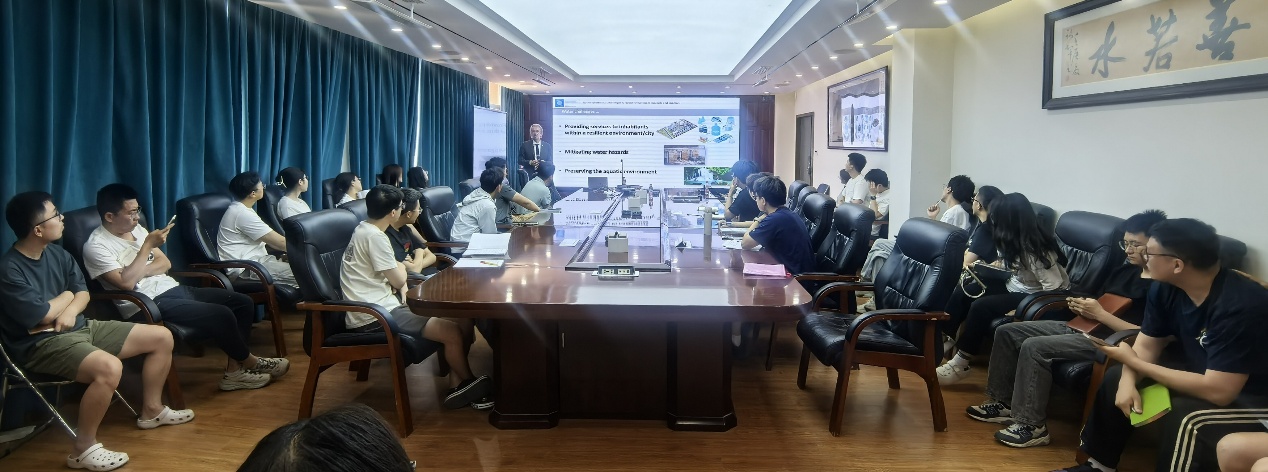 Gourbesville教授从联合国2030可持续发展目标中与水相关的议题切入,系统阐释了全球视角下水安全保障、水灾害防治、水环境治理等领域面临的科学技术与社会经济挑战。他指出,随着气候变化加剧和城市化进程加快,传统水管理模式已难以应对日益复杂的挑战,而人工智能(AI)、大数据、数字孪生等新兴技术正为水科学带来革命性突破。在讲座中,Gourbesville教授通过数字孪生技术模拟视频,生动展示了如何利用无人机、图像识别技术和人工智能对水利枢纽进行高效建模,优化洪水预警系统和水资源管理。他强调,“水信息学”(Hydroinformatics)作为交叉学科,正成为连接水利工程与信息技术的桥梁,为年轻学者和工程师提供了广阔的研究与应用空间。