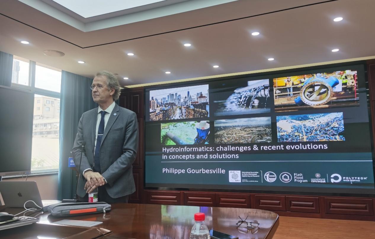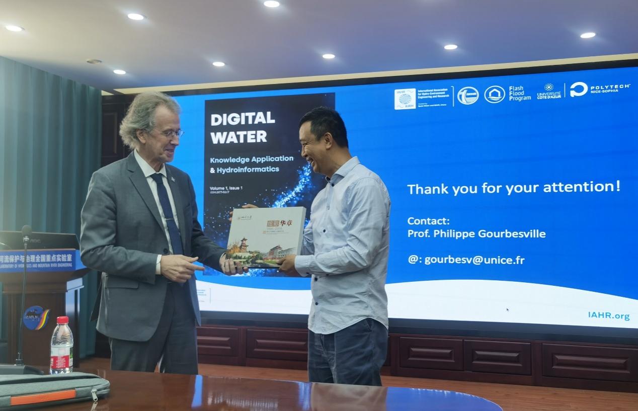 2025年5月19日下午,受山区河流保护与治理全国重点实验室邀请,国际水利与环境工程学会主席Philippe Gourbesville教授莅临我室,开展题为“Hydroinformatics: Challenges & Recent Evolutions in Concepts and Solutions(水信息学:概念与解决方案的挑战及最新进展)”的学术讲座。讲座由全国重点实验室副主任林鹏智教授主持,吸引了约50名师生到场聆听,现场学术氛围浓厚,互动热烈。