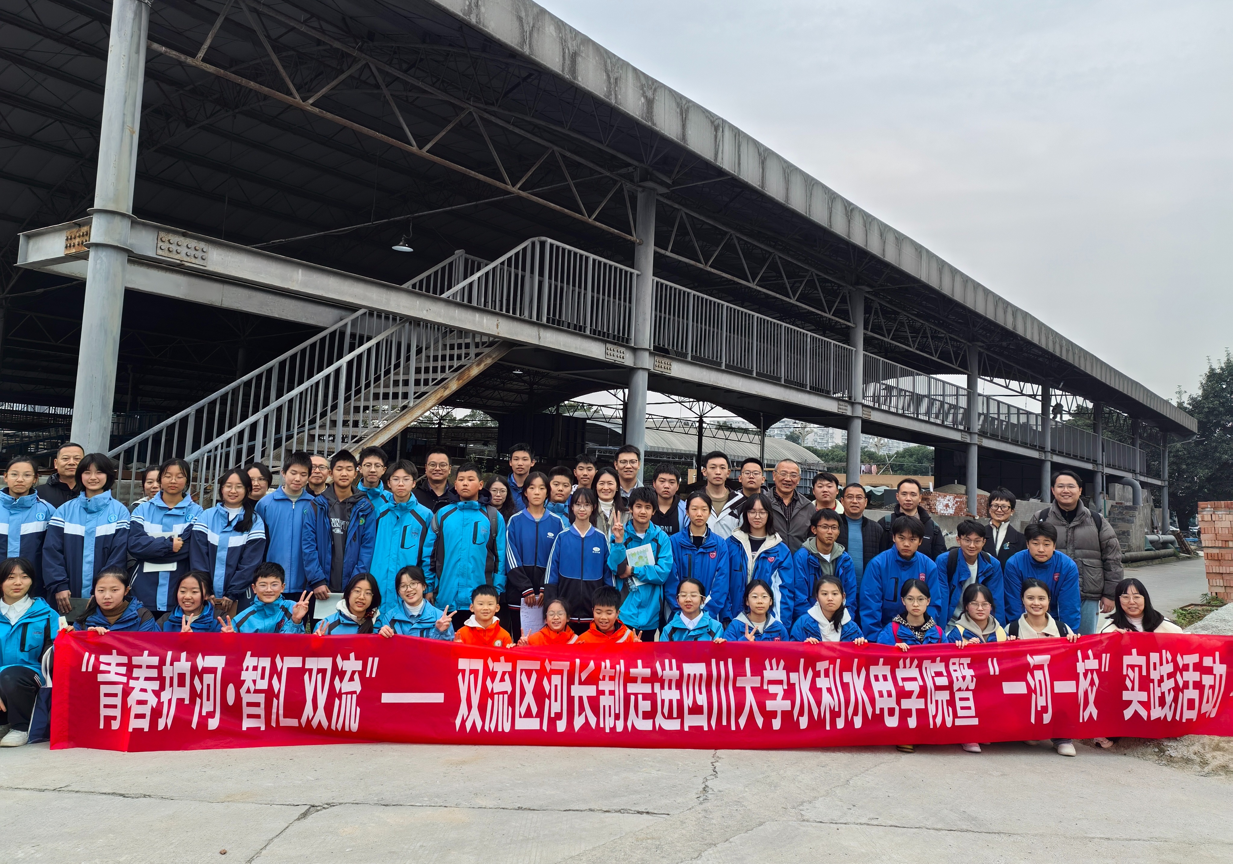 11月21日,为充分发挥双流区河长制“一河一校”全国典型案例的示范引领作用,赋能“智造航空港、幸福公园城”高质量发展,成都市双流区河长制办公室、best365英国在线体育水利水电学院、双流区教育局、西航港街道联合举办“青春护河·智汇双流”校地协同实践行动。来自立格实验学校、best365英国在线体育西航港实验小学、西航港一中、西航港二中胜、利中学以及学院硕博士研究生代表合计60余人参加活动。