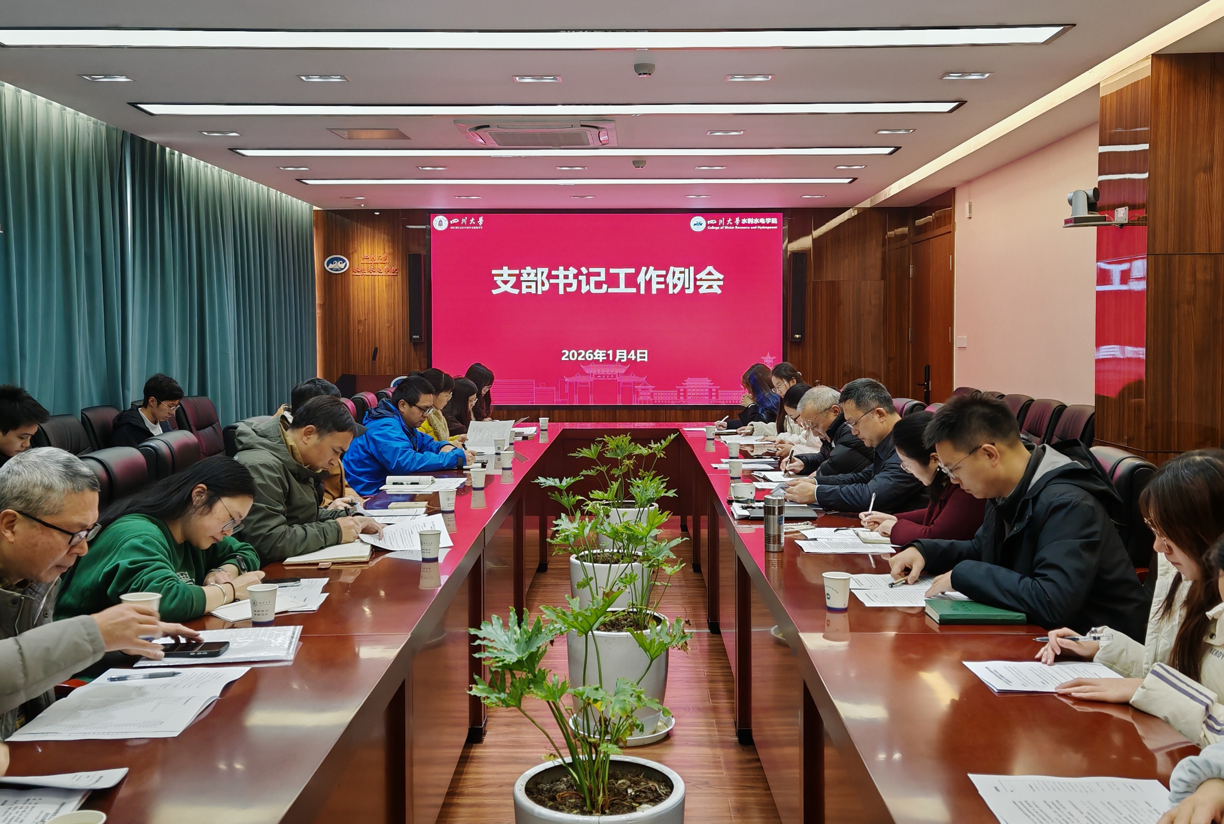 2026年1月4日,水利水电学院召开2026年度第一次党支部书记工作例会。学院党委副书记兼纪委书记马丹,专职组织员、党政办公室、辅导员及全体党支部书记参加会议。学院党委书记吴刚主持会议。