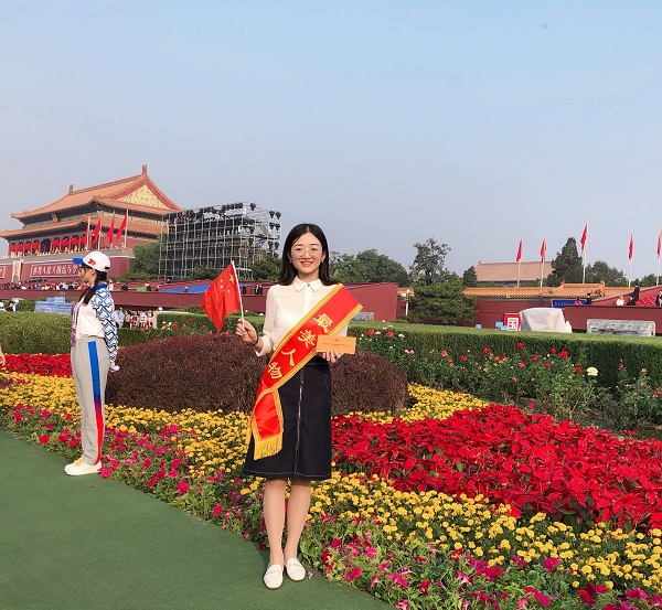 刘燚老师首先对自己能作为代表赴京观礼表示荣幸,讲述了在北京天安门广场通过观礼所亲眼见证到的当今祖国崭新风貌所和各族各界人民群众蓬勃激情,表达了心中的喜悦之情。她结合习近平总书记在庆祝中华人民共和国成立70周年大会上的讲话中所指出的“中国的昨天已经写在人类的史册上,中国的今天正在亿万人民手中创造,中国的明天必将更加美好”,谈到了作为一名新时代青年科研工作者的时代使命。那就是要坚持以习近平新时代中国特色社会主义思想为指导,坚定目标、立足长远、脚踏实地,挥洒青春汗水,奋力抒写华章,勇做科研排头兵,为实现中华民族伟大复兴贡献力量。