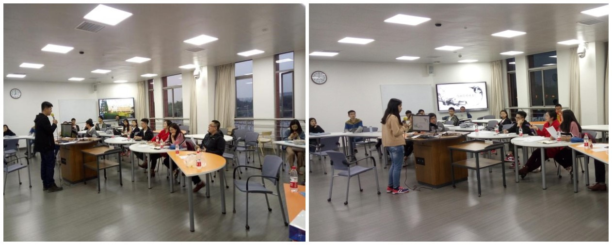 此次活动有幸邀请到贵州医科大学刘逸州老师,辽宁大学刘长浦老师,以及我校辅导员马丹老师和胡正红老师来担任比赛的评委嘉宾。比赛于晚上7点整正式开始,先由主持人介绍比赛规则,之后13位参赛选手依次上台开始以演讲的形式向观众们展示各自小组的寒假实践活动内容及成果。十三支队伍展现出了丰富多彩的实践活动,有家乡文化调研的;有专业相关研究调查的;有回高中母校去宣讲的······参赛选手们通过自己精彩的演讲,不仅向大家传达了自己在实践过程中感受到的快乐,还向大家分享了自己在寒假社会实践中发现的问题以及研究过程中收获到的知识。在每个参赛选手演讲结束后,评选嘉宾还会对其提出一些问题,通过与参赛选手交流互动的方式更为详细地了解他们实践活动的一些细节。