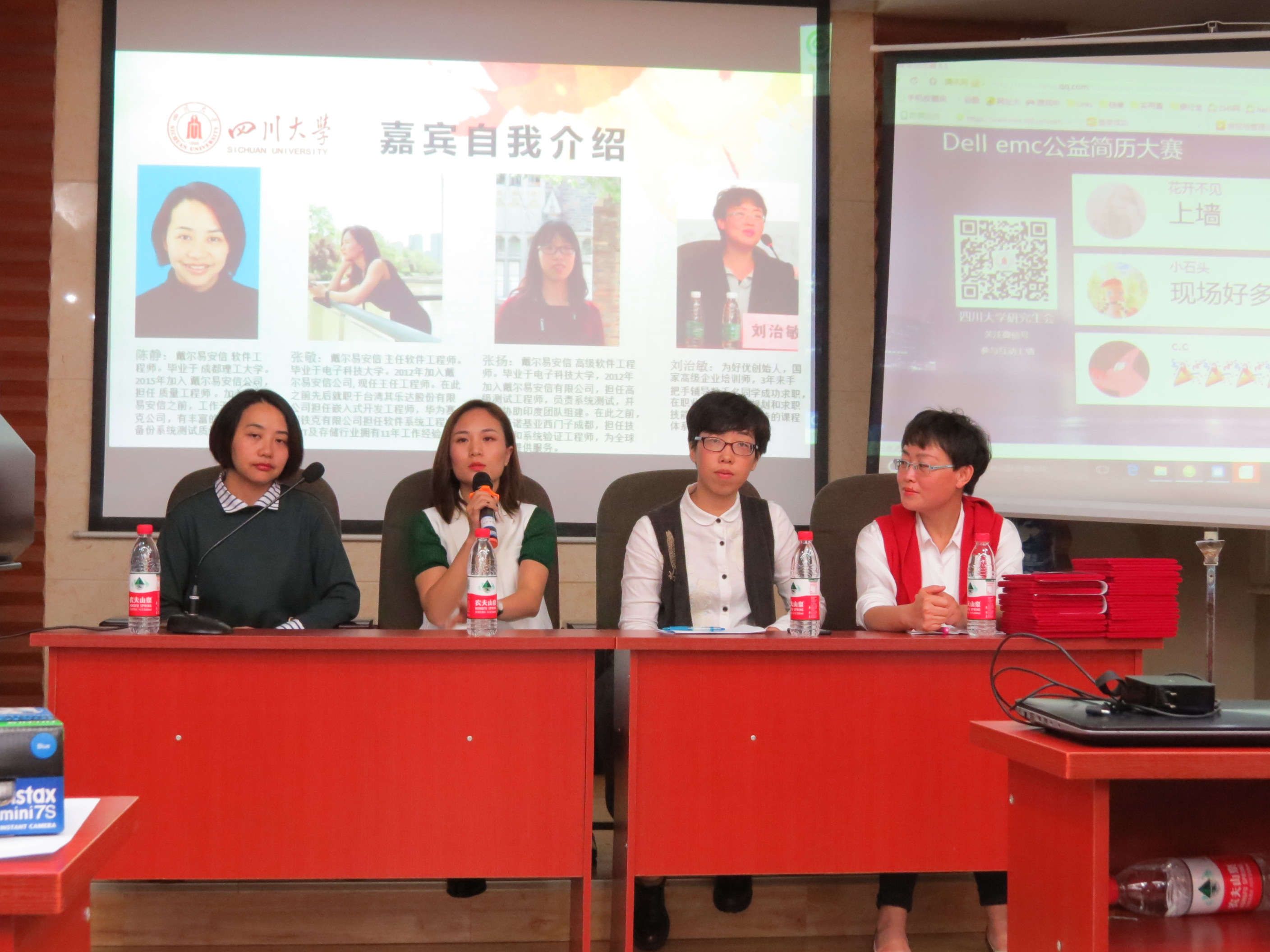 此次论坛特别邀请国家高级企业培训师、为好优女生职业发展学院创始人刘治敏老师、戴尔易安信软件工程师陈静老师以及主任软件工程师张敬老师和张扬老师。在此次论坛中四位嘉宾从全方位的角度来为工科女生职业生涯排忧解难!