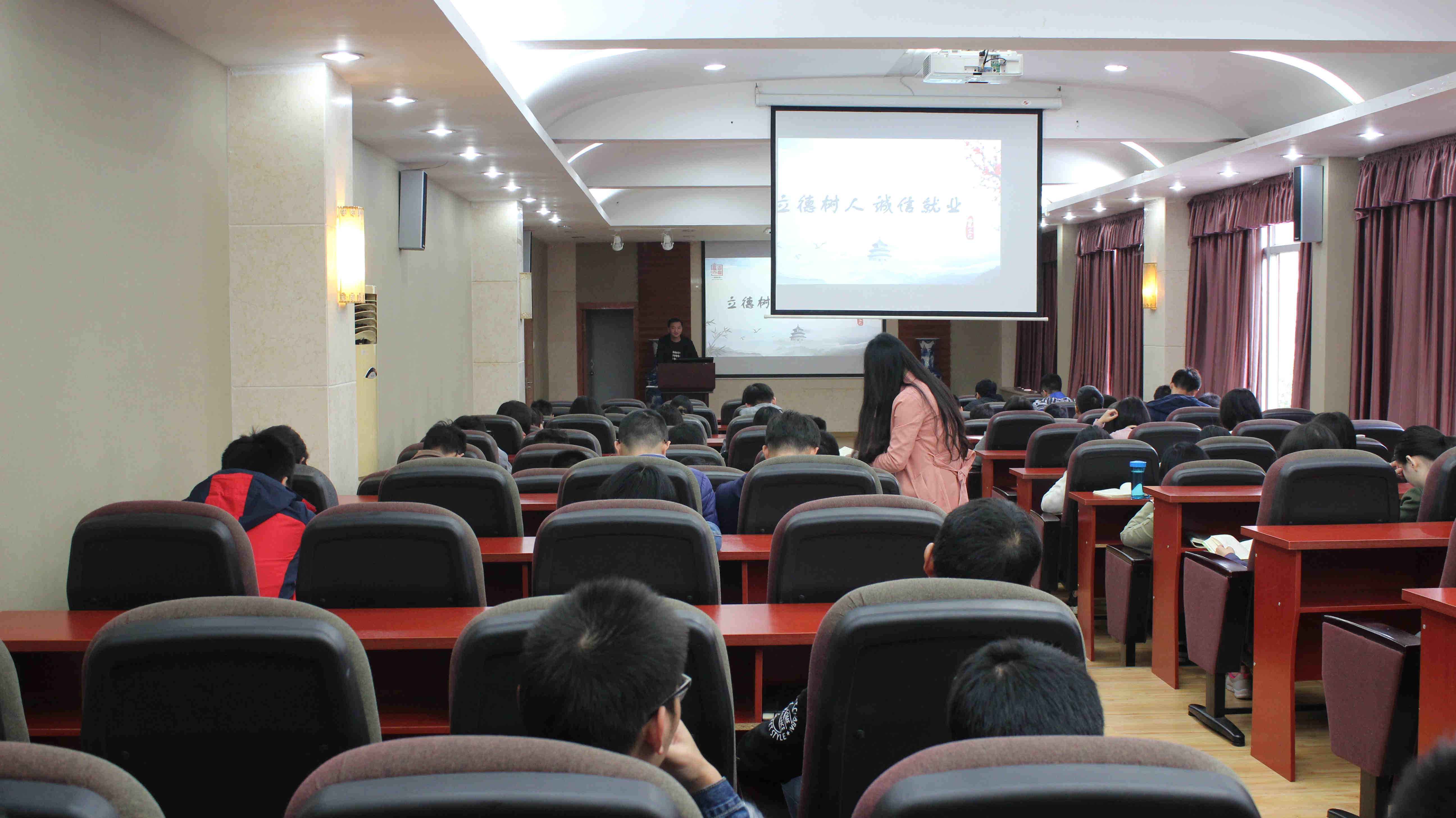 李国勇老师从大学生就业方向和就业趋势谈起,建议大家要不惧挫折、积极就业、不要对工作地域太过挑剔。接下来分析了当前大学生在就业方面失信的原因,以及失信导致的不良影响。通过生动的案例分析提醒在场同学,在决定签署就业协议前,要认真对待就业协议的约定,特别是其中的违约条款,择业要谨慎,签约要慎重。