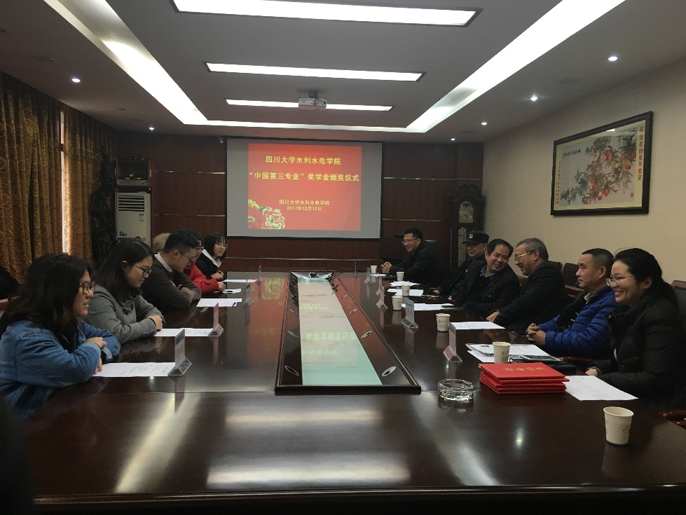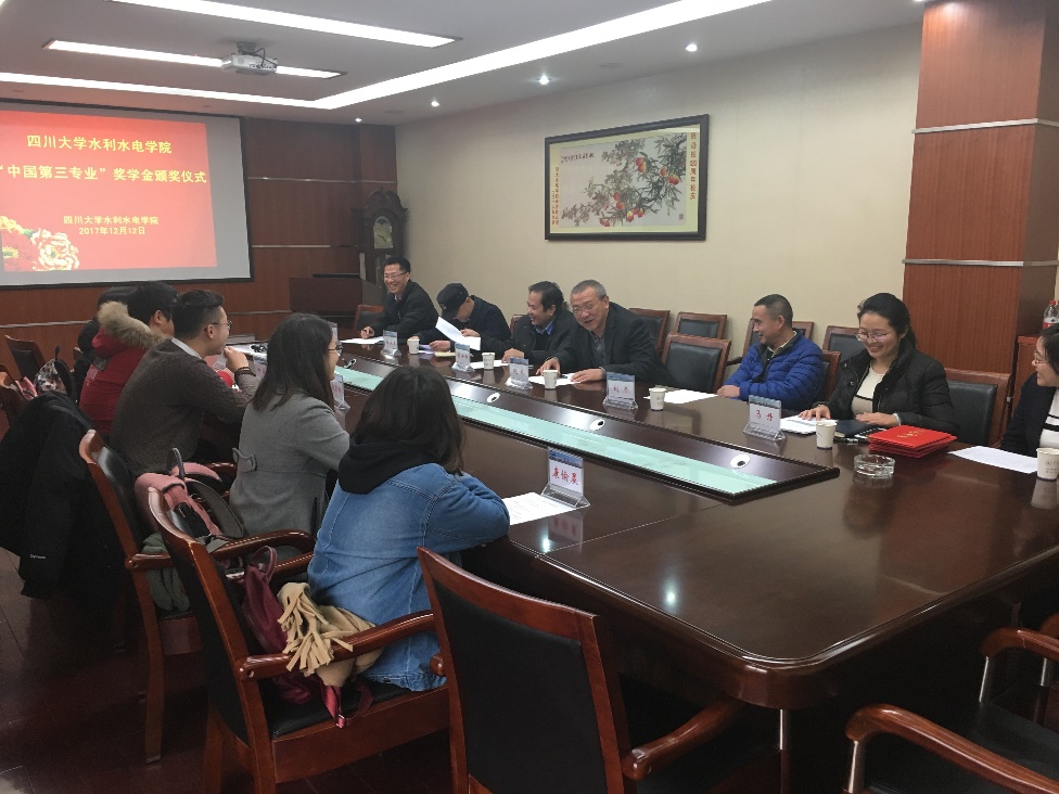 2017年12月12日,best365英国在线体育“中国第三专业”奖学金颁奖仪式在水电学院A312举行。参加此次仪式的领导和嘉宾有四川省电力设计院刘杰校友、水力学与山区河流开发保护国家重点实验室副主任刘兴年教授、水利水电工程系主任张立勇教授、农业水利工程系党支部书记李乃稳教授、学院组织员赵毅老师,获奖同学刘紫微、钟俊、康愉晨、何紫玲、倪宁淇也参加了仪式。颁奖仪式由水电学院学生科科长马丹老师主持。
