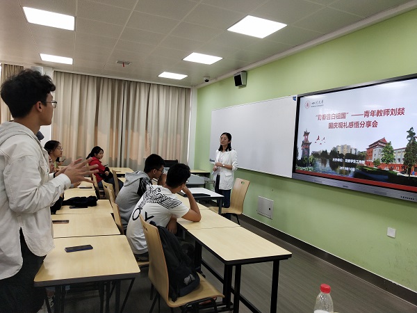 为激励广大青年学子勤学笃行、研践相济,用身边的榜样鼓舞引领师生不忘初心、砥砺奋进,10月16日,第十四届中国大学生年度人物、2019年全国“最美大学生”称号获得者、我院特聘副研究员刘燚,在江安校区第一教学楼C座106教室,分享了她受邀参加庆祝中华人民共和国成立70周年大会观礼活动的心得感悟。此次分享会由党委学生工作部主办,来自水利水电、化学工程、法学等学院的同学们参加了分享。