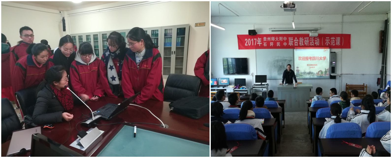 (贵阳实验三中学生交流现场) (贵州师大附中宣讲现场)