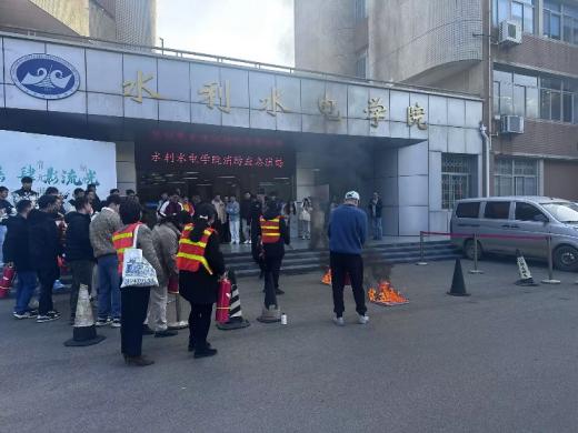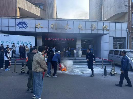 讲座结束后,现场师生进行了消防疏散演练,从会议室有序疏散至水电大楼前。最后,进行了使用灭火器扑灭初期火灾的实操演练。这次活动进一步增强了师生的安全意识,提高了师生安全风险识别能力和应急处置能力。