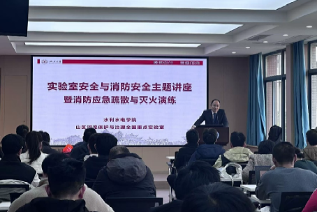 为提高全院师生消防安全意识和应急处置能力,水利水电学院、山区河流保护与治理全国重点实验室于11月29日下午举行了消防安全知识讲座和消防应急演练。讲座由学院工会主席、实验中心主任李洪涛主持。