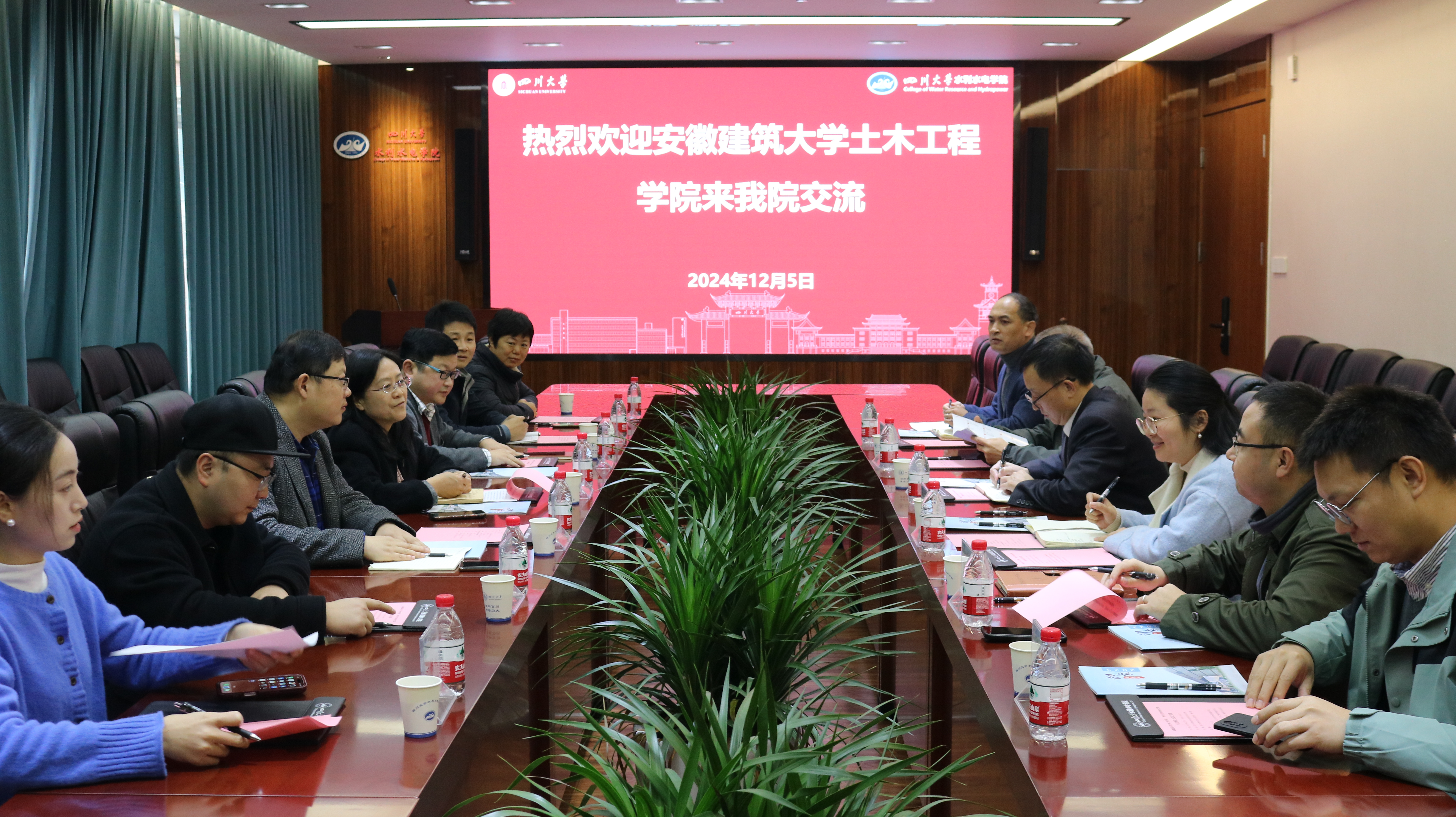 12月5日,安徽建筑大学土木工程学院党委书记王媛、副院长施国栋一行到我院调研交流。学院院长杨兴国、党委副书记兼纪委书记马丹以及相关人员参加交流座谈会。