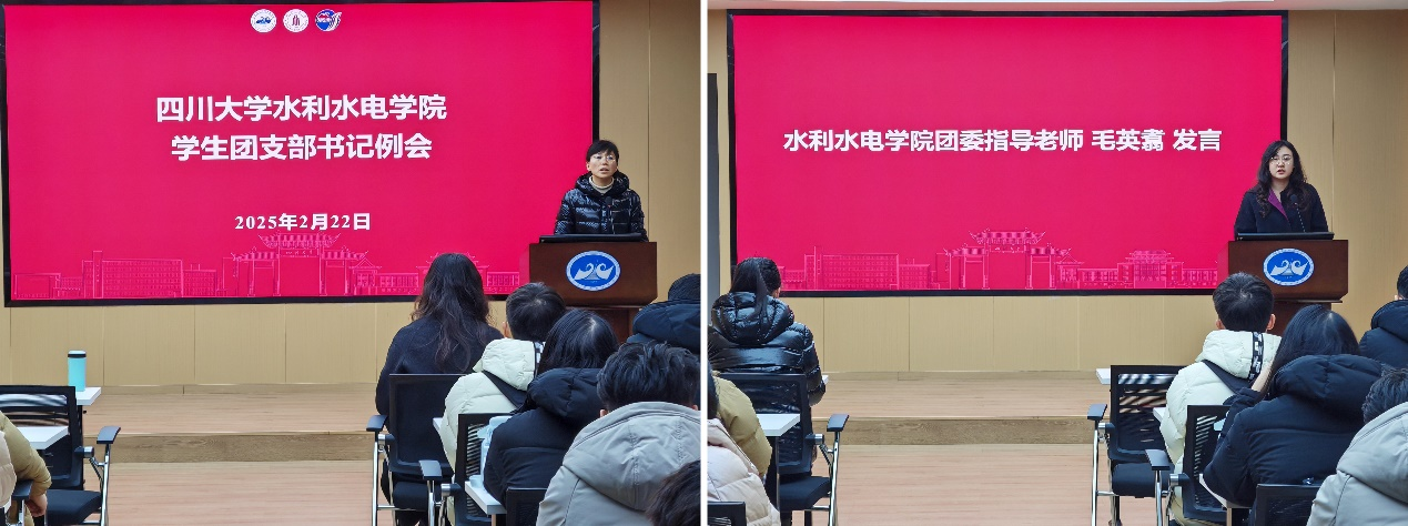 在联合会议上,马丹副书记解析《水利水电学院2025年学生工作任务分解表》,指导构建“目标-路径-成效”工作体系,提出运用AI技术创新思政教育。学生骨干要掌握智能工具,推动工作数字化转型。会议也邀请学生代表分享经验,构建跨层级协作模式。团委书记任成瑶在A331会议室主持会议,提出“三维提升”工作要求:强化思想引领、创新组织建设、实施品牌培育。团委指导老师毛英翥阐释团员教育管理制度,团支书杨文艺分享基层团组织建设经验。