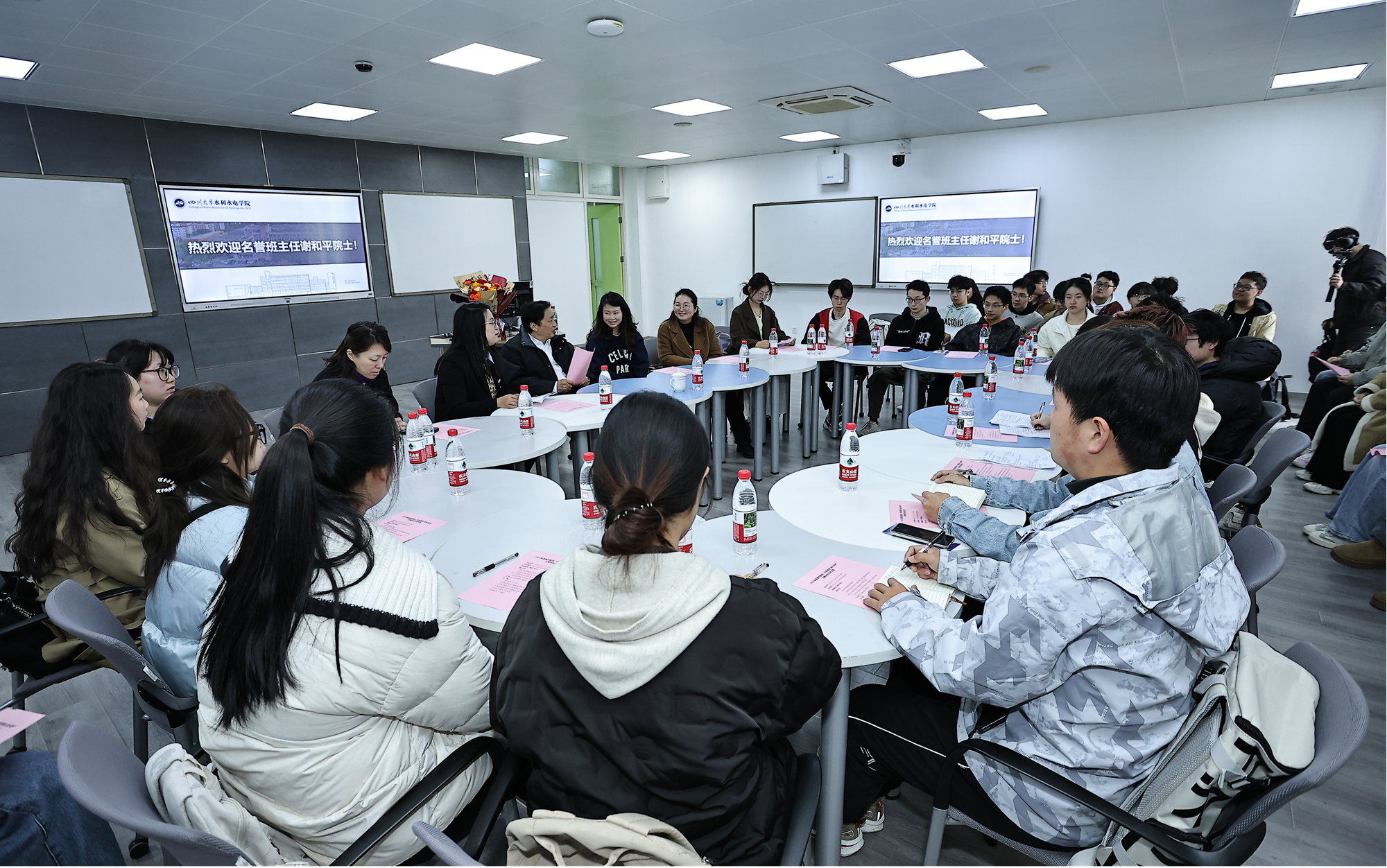 3月29日上午,谢和平院士在川大江安校区综合楼B座306教室参加水利水电学院本科2022级“深地与地下水利”国重创新班“书香浸润,成长有声”主题班会。水利水电学院学院副院长张茹、党委副书记兼纪委书记马丹、2022级辅导员和国重创新班全体学生以及部分学生代表参加了活动。