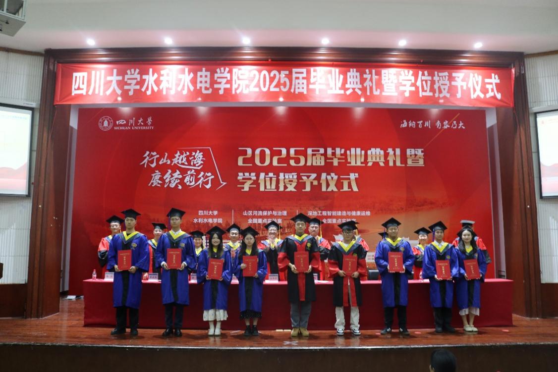 行山越海,赓续前行。6月26日下午,水利水电学院举行2025届学生毕业典礼暨学位授予仪式。学院领导班子成员、全国重点实验室领导、学位评定分委会委员、各系(所、室、中心)领导、教师代表、毕业生家长及2025届全体毕业生参加典礼。学院党委副书记马丹主持典礼。
