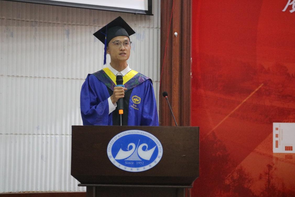 研究生毕业生代表周子钰回顾在川大的七年求学路,他感恩母校、师长与家人,分享科研实践与成长感悟,号召同学们心怀感恩,肩挑责任,以自信自强、守正创新、踔厉奋发、勇毅前行的精神风貌和奋斗姿态,积极投身国家建设。最后祝愿毕业生展翅高飞,前程似锦;祝愿恩师身体健康,桃李满疆;祝愿学院蓬勃发展,再书华章。