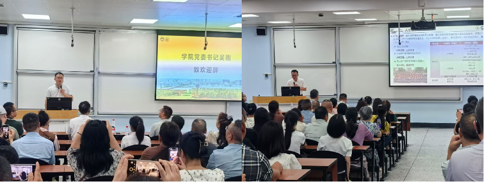 走访宿舍后,学院领导班子到江安一教参加2025级新生家长见面会,见面会由2025级辅导员郑欣悦主持。吴刚书记对家长们的到来表示热烈的欢迎,强调“家校协同是育人关键”,既寄语新生“主动探索专业领域、远离惰性干扰”,也承诺学院将搭建家校沟通桥梁,共同为学生成长护航;院长杨兴国从“优质师资队伍、完善专业体系、丰硕科研成果”三方面介绍学院实力,并详细解读学生出国深造、社会实践等发展通道;25级辅导员粟秋滔围绕1458育人体系全面介绍讲解水电育人相关工作。