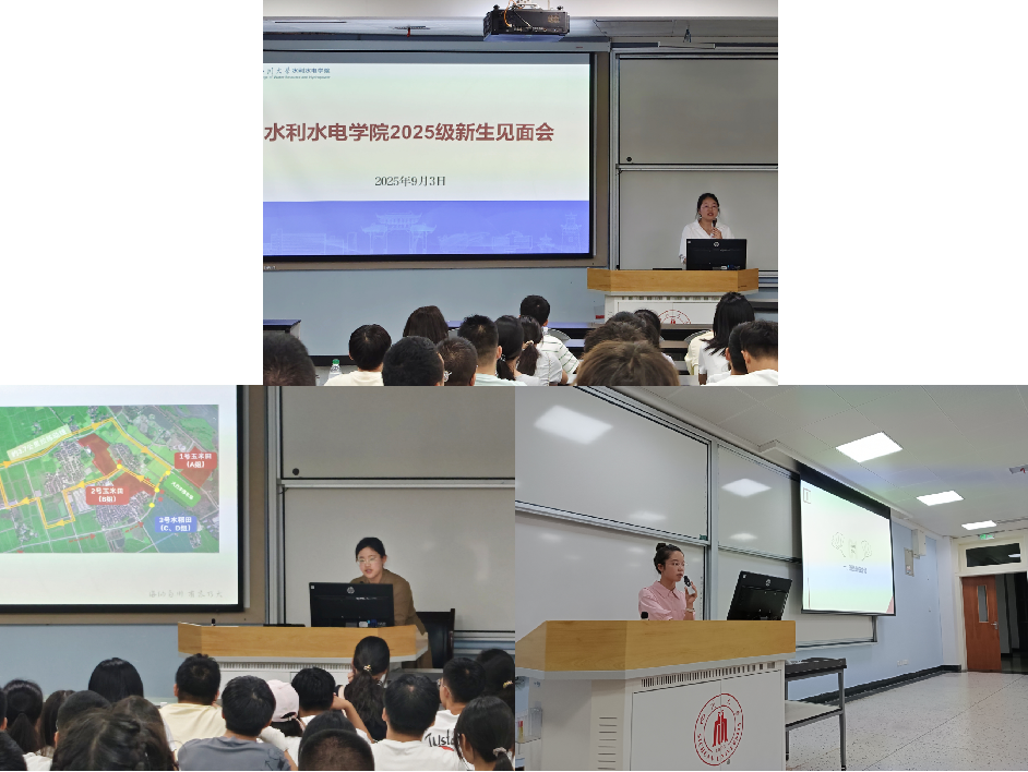 9月3日晚上,学院举行2025级新生见面会。党委副书记马丹以“水利精神传承”为核心,向新生们讲述了学院的历史底蕴与学科优势,提醒同学们“尽快适应大学学习节奏,明确个人发展规划,在水利水电领域找准定位,为未来发展筑牢根基”。随后,辅导员粟秋滔、郑欣悦分会场开展军训拉练与班委选举专项动员。
